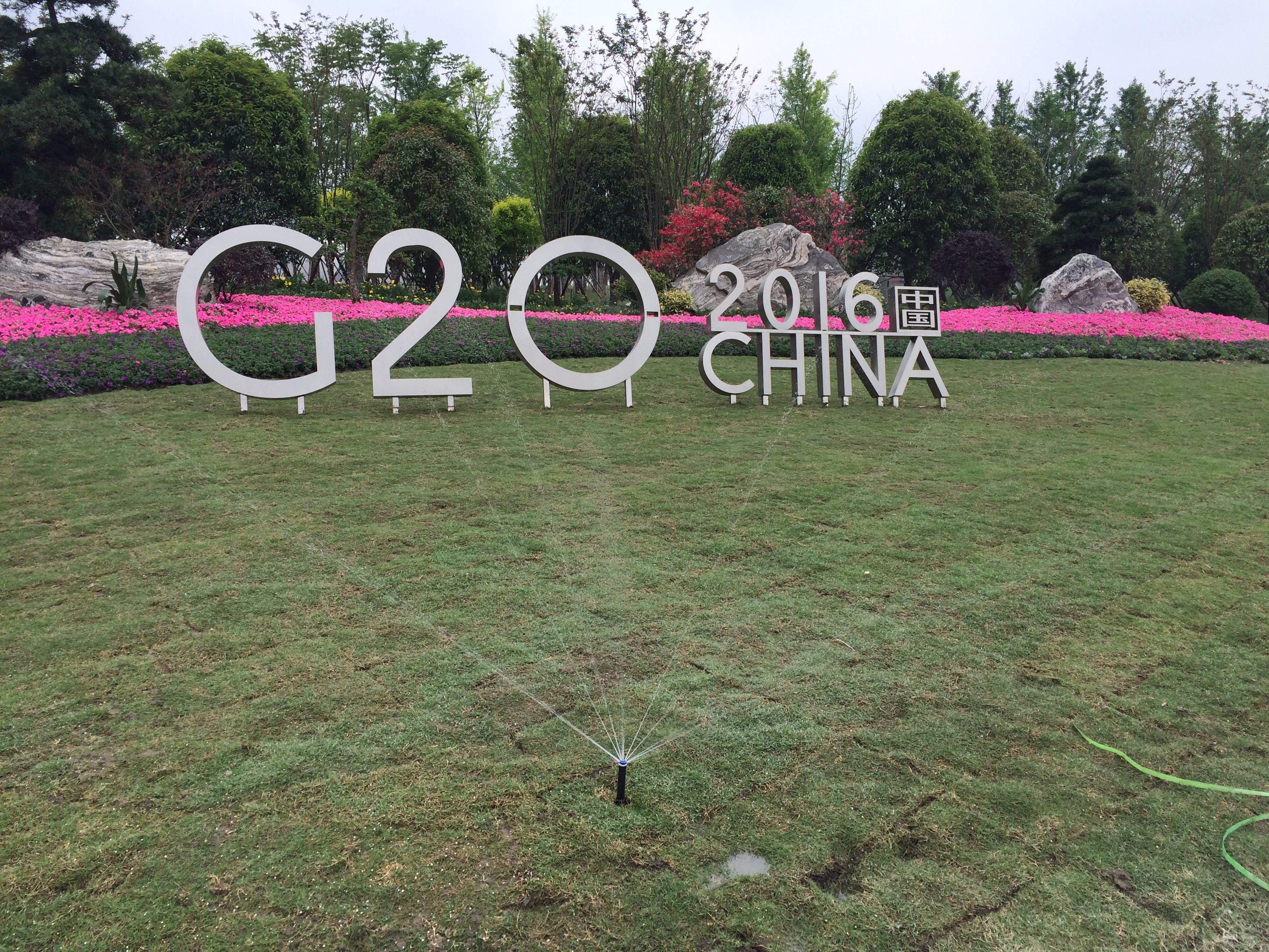 美国知名灌溉设备——HUNTER灌溉系统服务峰会绿地。绿友公司根据现场情况,为2016年杭州G20峰会国际会议中心、西湖国宾馆、奥体中心、国际博览中心屋顶花园等相关场所量身打造出智能、节能的自动灌溉控制系统。小型、不规则道路绿化带,采用 NODE 无线电池系统和 MP 多射线低灌溉强度节水喷头。大型、公共养护绿地,采用中央远程 GPRS 通讯、ACC 两线解码,配 ET 蒸发蒸腾及土壤湿度传感系统以及角度自动恢复的 PGP 旋转喷头。亨特产品和绿友服务得到项目方认可。