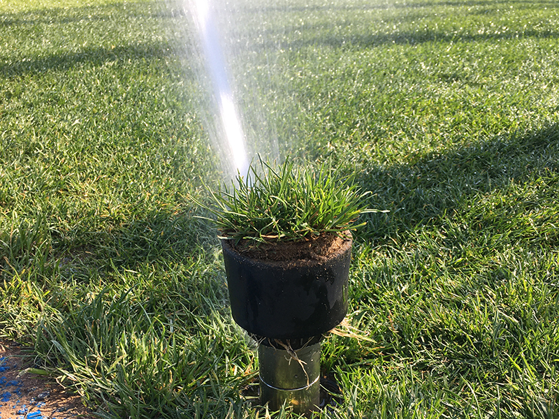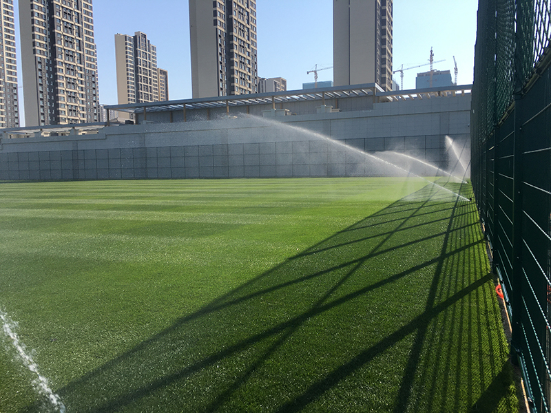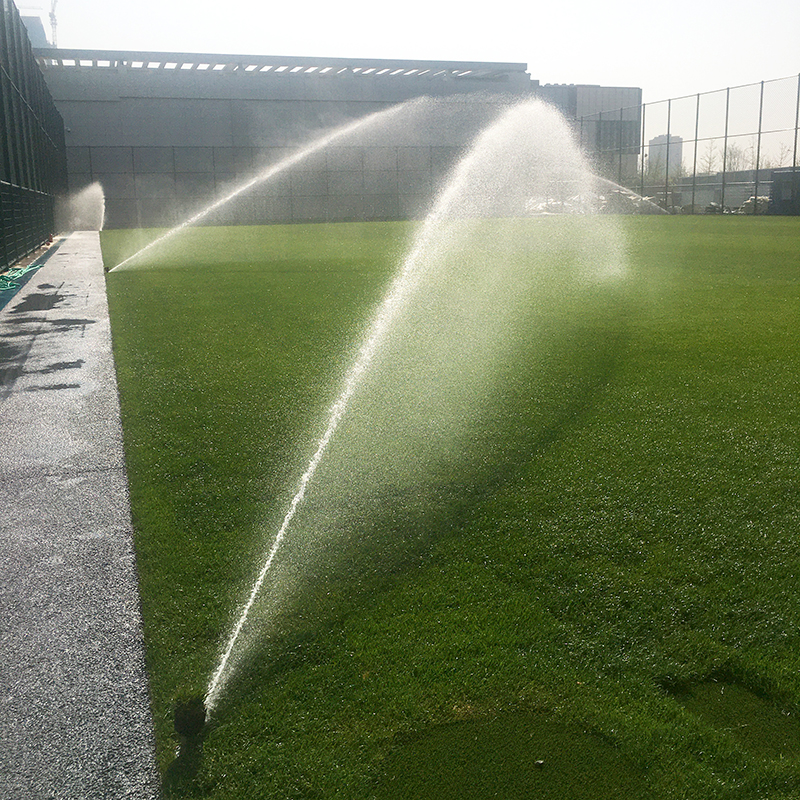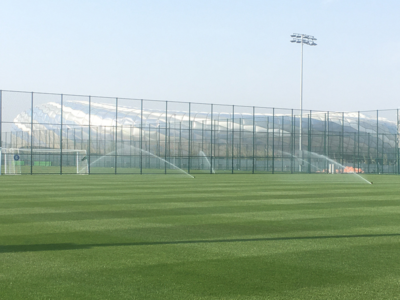 喷头全部采用雨鸟8005喷头,并全部配备了草坪杯,实现场地内全部是草坪地面,看不到喷头坑,保持美观的同时也避免球员在运动时造成球员的脚伤。