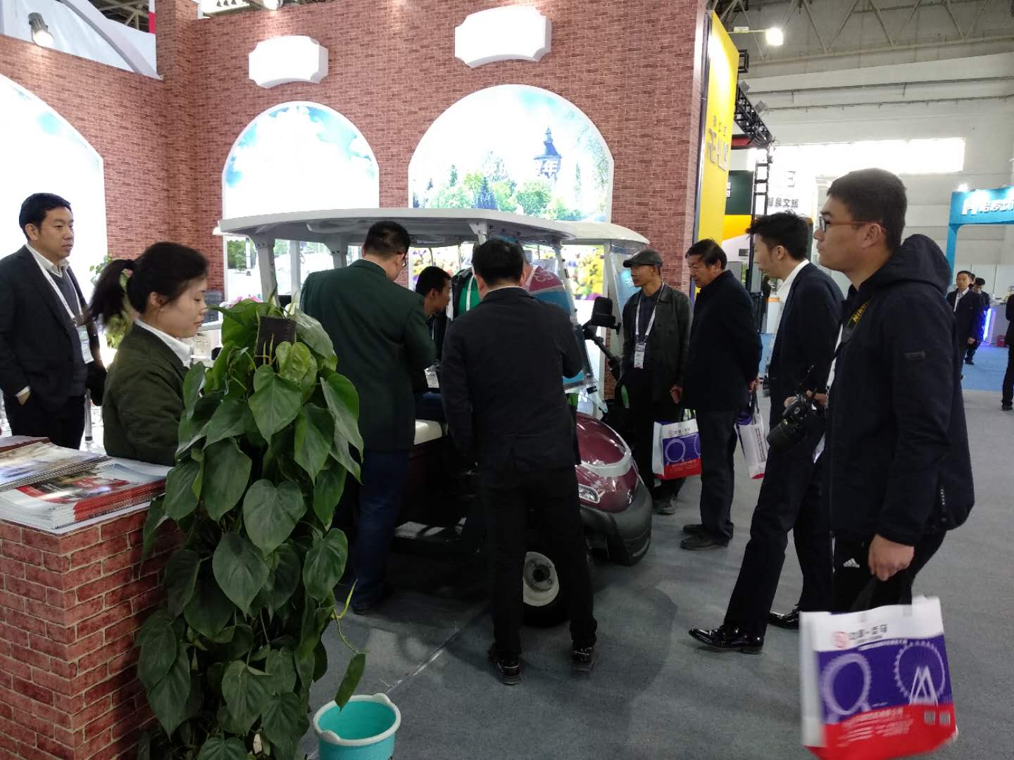 展会上,我公司电动车辆吸引了众多参观者的目光,来自景区,游乐场等各行各业有合作意向的专业客户和我公司工作人员进行详细地咨询与洽谈。
