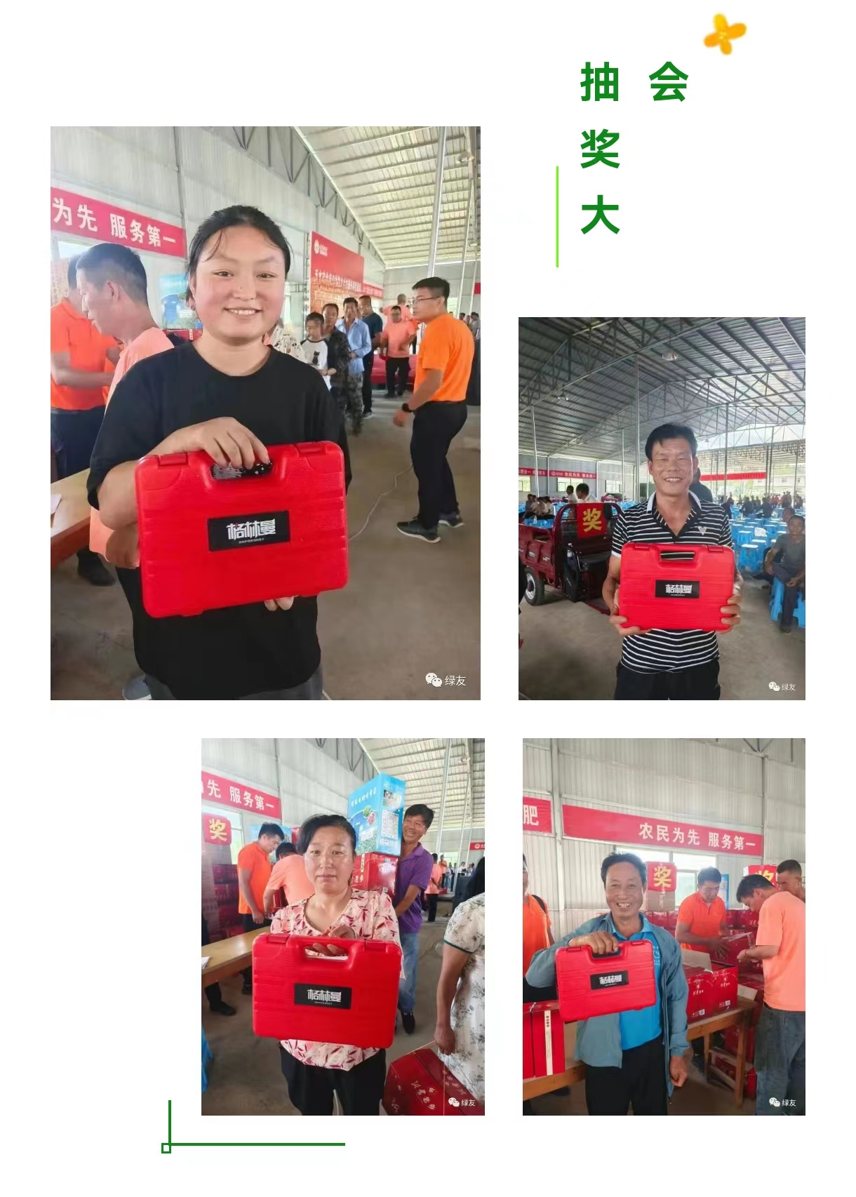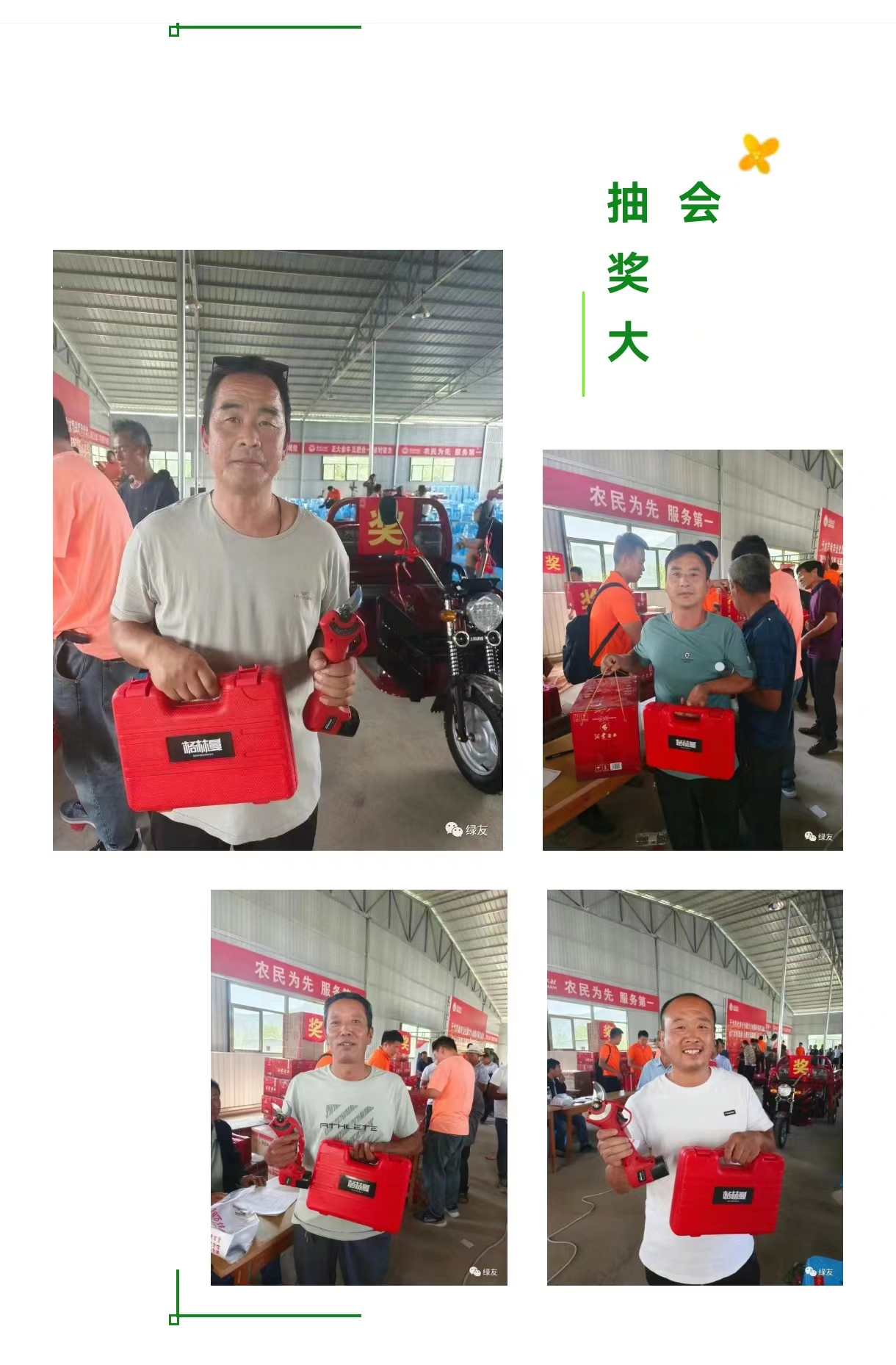 西安绿友园林机械有限公司宝鸡分公司携手某公社分别于8月24日和9月3日举办助力乡村振兴项目千人抽奖大会。每场次参会人员均达千余人,绿友公司的格林曼电动修枝剪作为奖品,广受农户好评。