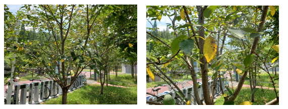 除此之外,笔者观察到,长三角地区许多早樱在受到高温胁迫,出现树势衰弱、叶片枯黄的情况,各种病菌侵入,严重的出现了叶片穿孔。
