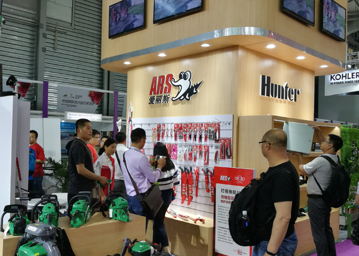 设备展示区更是吸引了众多专业观众的眼光,绿友集团展示了自主研发、生产以及代理的剪草机、打药机、灌溉系统、冷雾系统、电动车辆、粉碎机、无人机、园艺工具、植保用品等十多种产品。期间,绿友集团展位上一直人潮涌动,自产设备引来诸多关注。有问粉碎机的,有了解大型零转弯剪草机的,有被冷雾系统所吸引的,有围观无人机的,更有很多观众现场购买爱丽斯园艺工具。绿友工作人员不知疲倦地解答着各种各样的问题,也收获了大量订单。