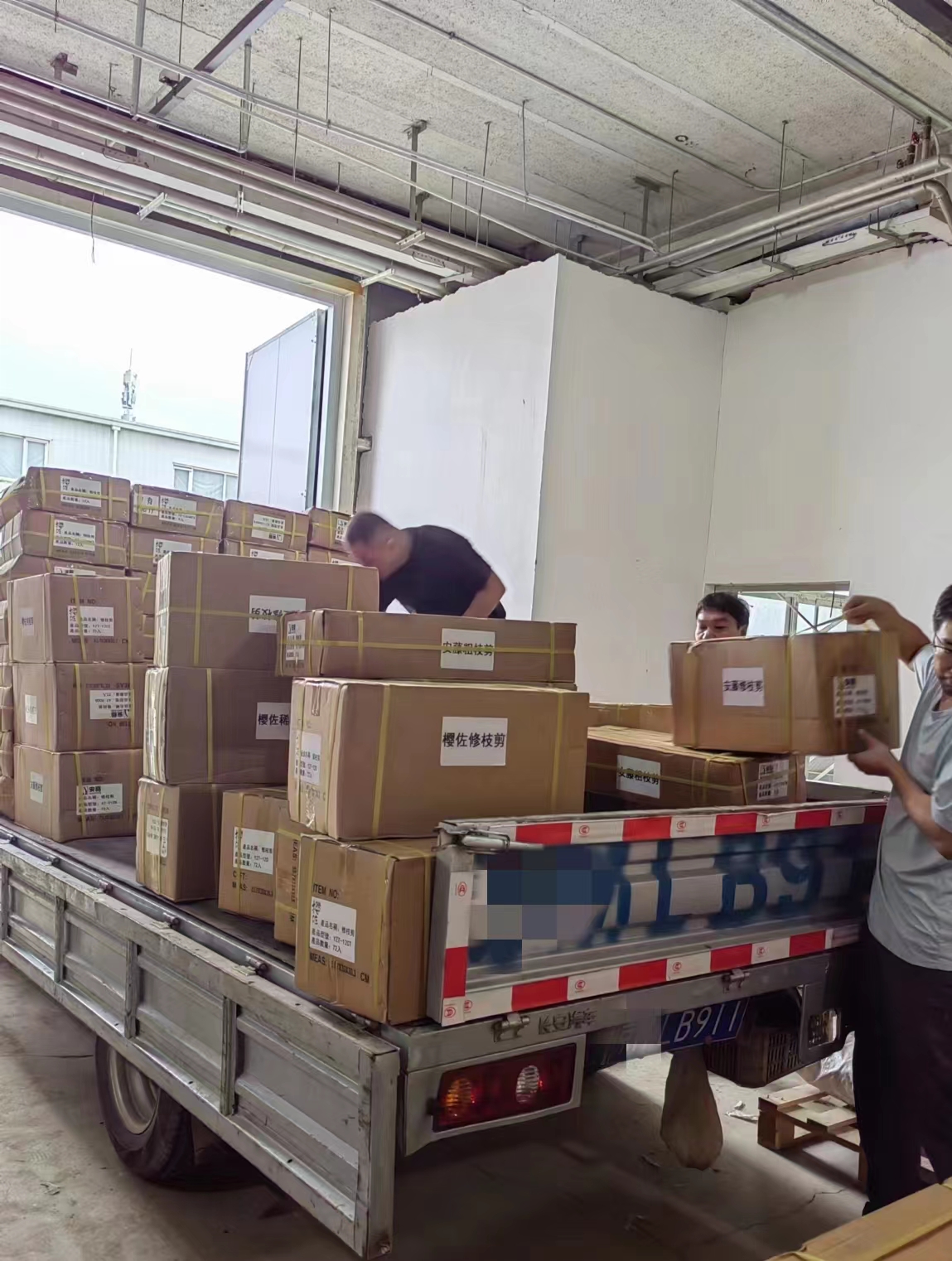工具到货,为尽快完成供货,潍坊绿友的同事们一件件、一箱箱卸到库房,根据每个镇的需求,按型号按数量分装、核对,为打药机加注机油以便客户使用。汗水模糊视线、打湿衣襟,却毫不影响同事们的工作劲头。