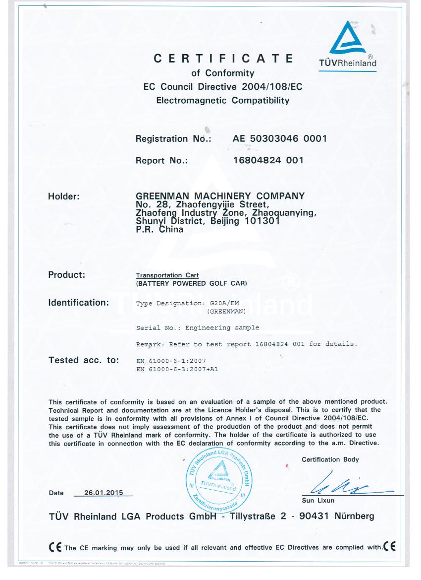 绿友集团自主研发的GREENMAN两座电瓶车golf car通过了CE认证。