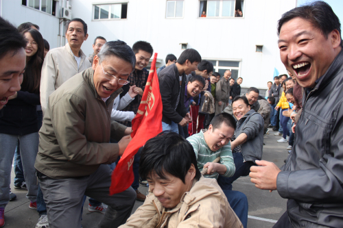 拔河比赛是最考验团队凝聚力的项目了。裁判员一声令下,所有的选手劲往一处使,勒紧麻绳不放松,在强有力的“1、2、3”的口号下,每个参赛者使出九牛二虎之力,把绳子往自家起点线边拉。只见绳索中心的红线忽而左忽而右,参赛选手们丝毫不放松,腿弯了、差点就坐在地上了,大家又一股力量地往回拉。围观的同事们急得直跺脚,嘴上喊着“加油、加油”,手还一直往一边“推”,好像自己也在拉着比赛绳一样。在这场力量与意志的比拼中,拓宝二、营销二部、草坪灌溉联合组夺得了最后的胜利。