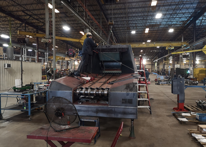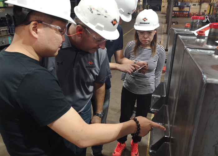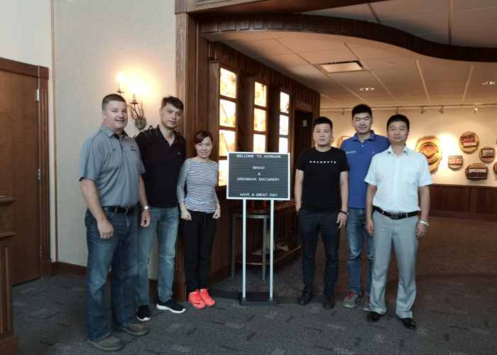 在木霸克国际市场总经理Curt 先生的带领下,绿友一行进入木霸克的生产车间,了解每一台高品质产品是如何生产出来。从生产计划,金属加工,材料分选,品质控制,现场管理,配件存储,人员培训,木霸克工厂毫无保留展示每一处生产细节,而依靠这些细节的管控才能造就木霸克的品质和市场认可。参观期间,Curt特意强调了材料分选是木霸克设备和其他品牌产品的重要区别,木霸克针对每一部位应用和受力不用,在材料选择都会进行区分,例如进料口下方的金属板面由于需要经受长时间撞击,这块板面的选择使用和美国坦克装甲相同材料,并以不同颜色区分开。当消费者购买设备时,面对不同品牌产品都是光鲜亮丽,而隐藏在漆层下面的细节决定他们之间的区别,发现这些细节的不同则需要深入生产车间,而这也是木霸克最希望客户参观他们生产的原因。
