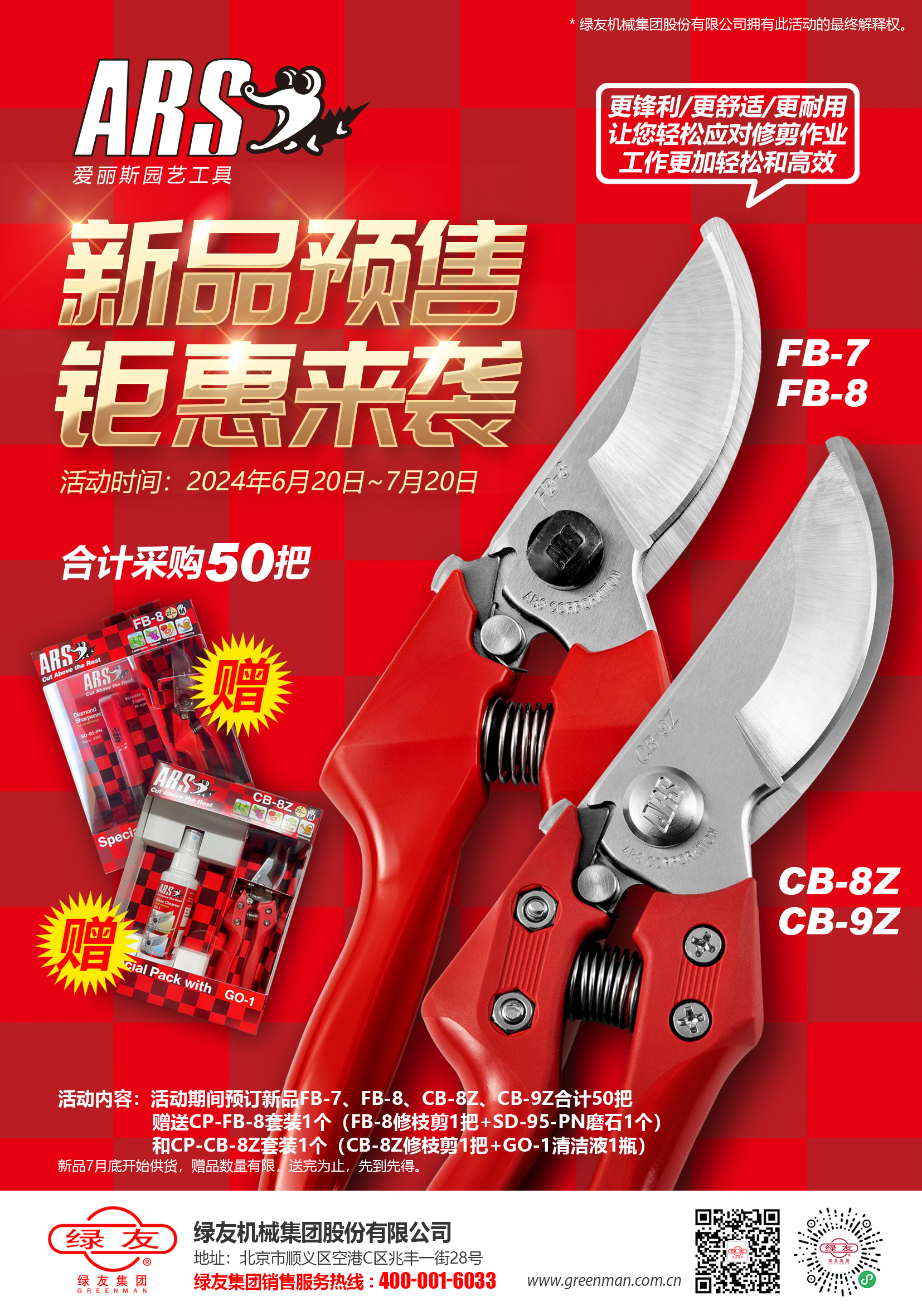 爱丽斯FB和CB系列修枝剪经过精心设计和打造预计于7月底全新震撼登场,限时预售活动火热开启!
