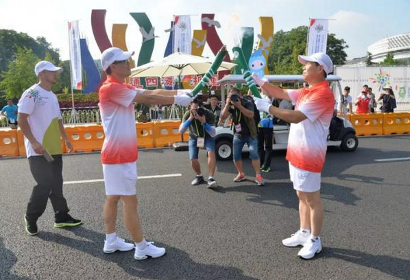 8月8日上午,浙江省第十六届运动会火种汇聚·火炬传递暨2018年浙江省全民健身日主会场活动启动仪式在湖州市民广场举行。
