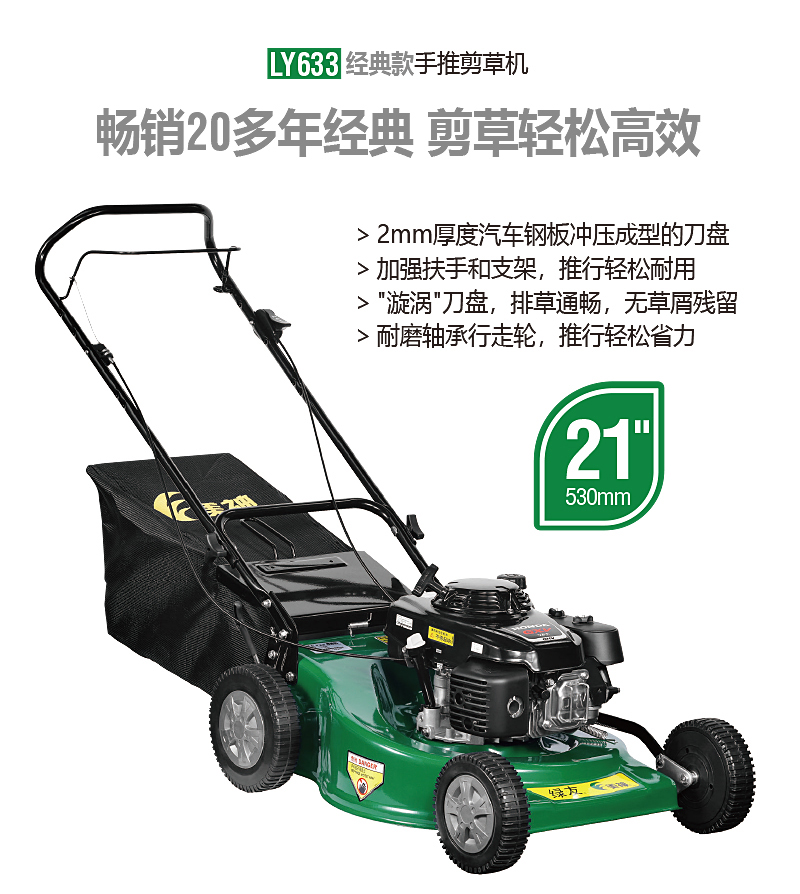 21寸草坪修剪机具有自走和手推两种行走方式可供选择。