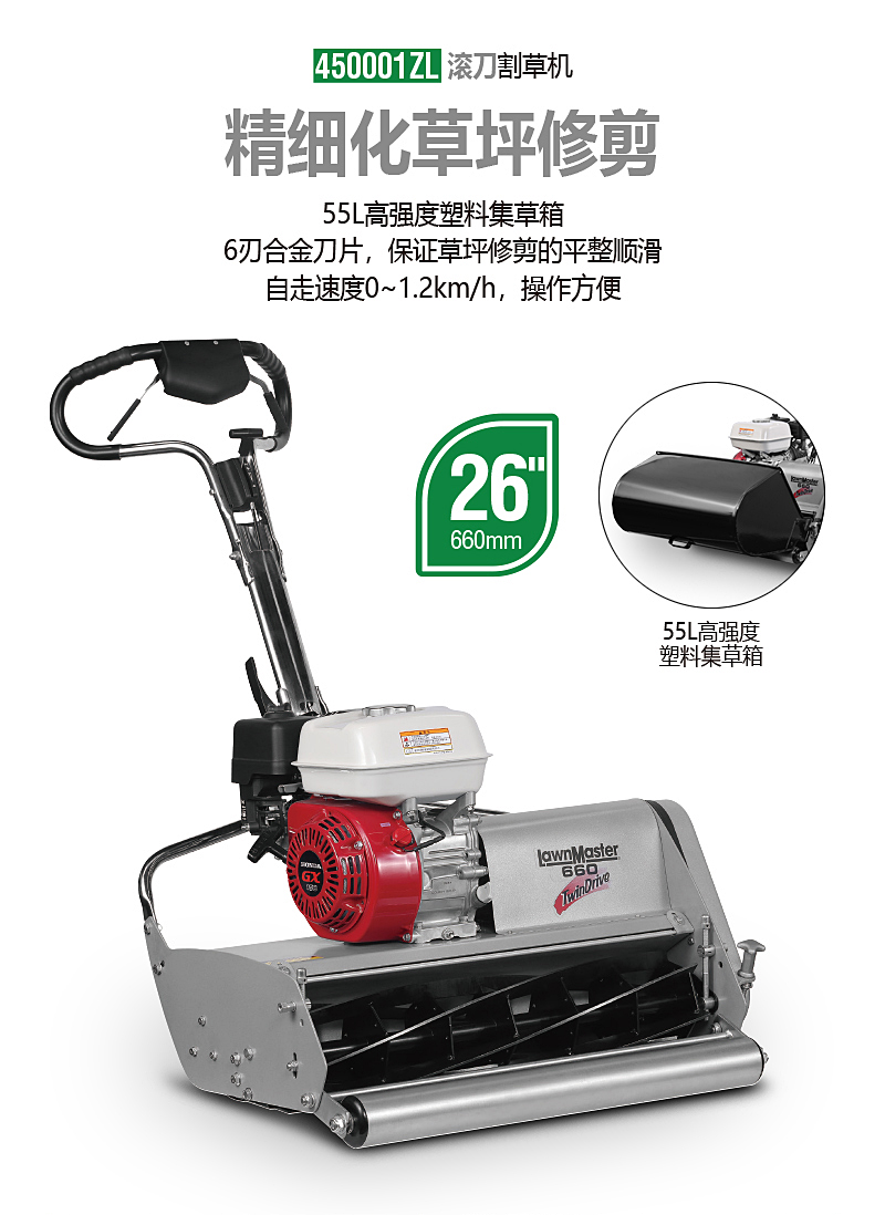 滚刀草坪修剪机是一种精准草坪的修剪方式,具有修剪出来的草坪平整细腻等特点,适用地标、城市中心广场草坪的修剪。